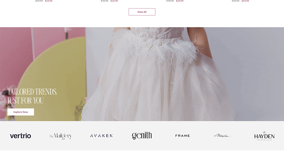 - Bridal Dresses Features: Specially tailored features include bridal collection lookbooks, style filters (silhouette, fabric, color), and appointment booking for fittings or alterations. These features help customers explore blush wedding dresses, cathedral train gowns, or backless bridal options with ease and confidence.