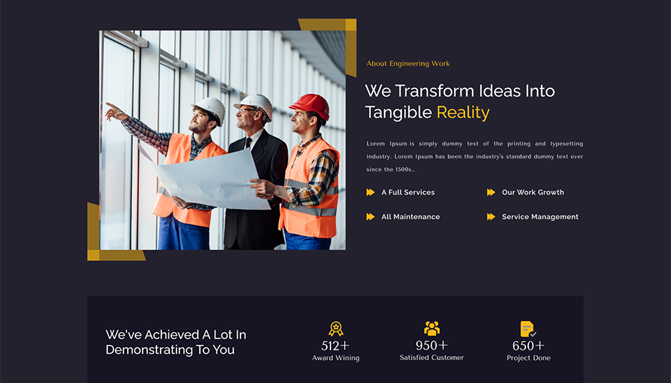 - Home Construction Features : Highlight construction projects, services, and portfolio effectively.