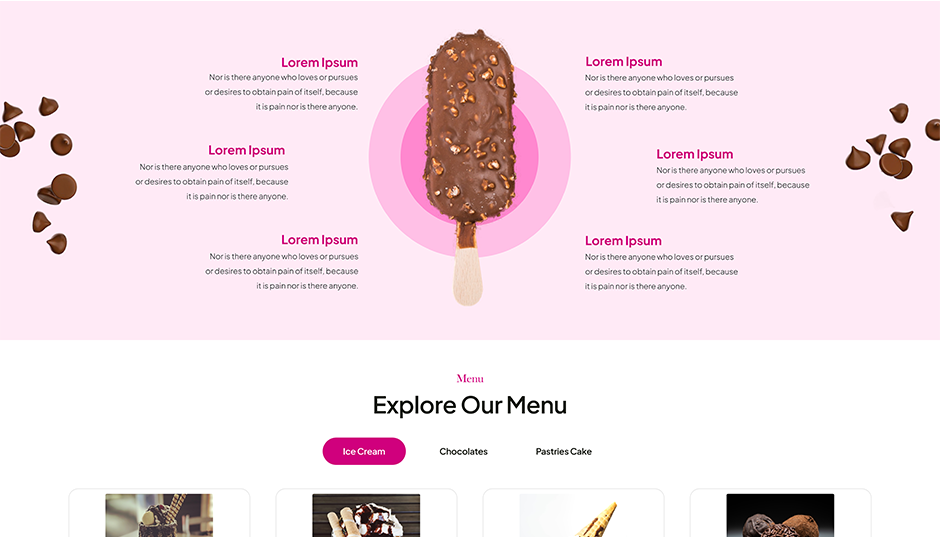 Ice Cream Features: Specific elements and functionalities designed for ice cream businesses make it a breeze to showcase flavors, create menus, and highlight specials, making your ice cream website template truly shine.