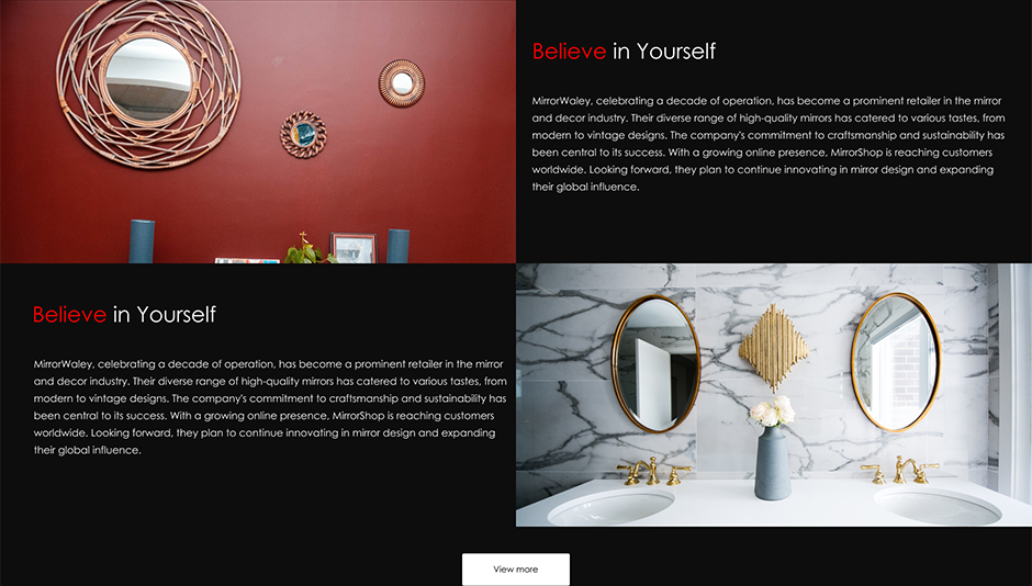 Mirrors Interior Features: Benefit from a host of features designed exclusively for interior design professionals within the Master Mirror theme, enabling you to showcase your work with style and elegance.