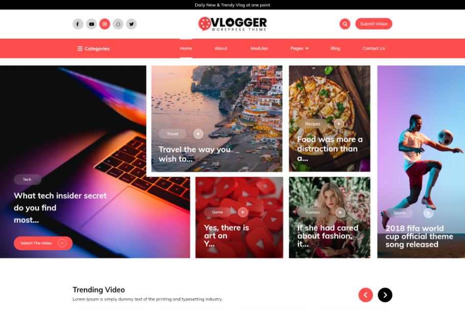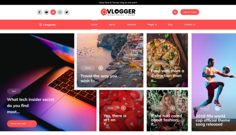 The Premium Vlogger WordPress Theme is the ultimate solution for vloggers and video bloggers seeking to elevate their online presence. With its sleek and modern design, this premium vlog WordPress theme offers a plethora of advanced features and customization options. It boasts a responsive design that ensures your videos look stunning on all devices, captivating your audience. You can enjoy the freedom of personalization with extensive customization choices. This vlog WordPress theme enables you to tailor your website to reflect your unique style.